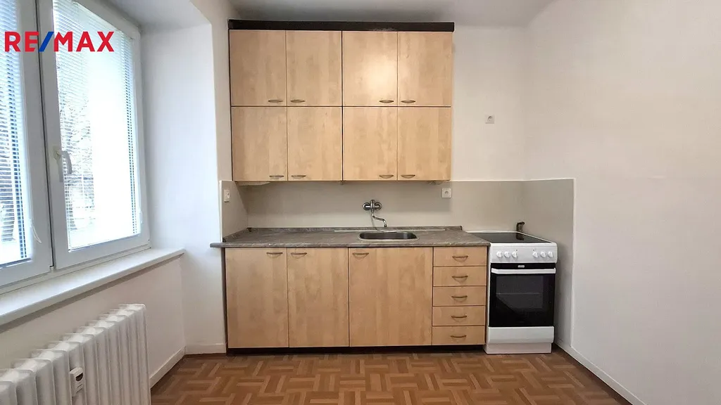 Byt se skládá z obývacího pokoje, ložnice, kuchyně, koupelny s vanou a samostatné toalety. Pro dostatek úložného prostoru jsou k dispozici 2 komory - v 1 komoře je napojena pračka, ve 2. komoře jsou police a v předsíni velká vestavěná skříň, což usnadňuje organizaci domácnosti. Kuchyňská linka je vybavena elektrickým sporákem a lednicí. Interiér bytu je čistě vymalovaný a podlahy v obytných místnostech jsou pokryty novým PVC. Byt není zařízen nábytkem.