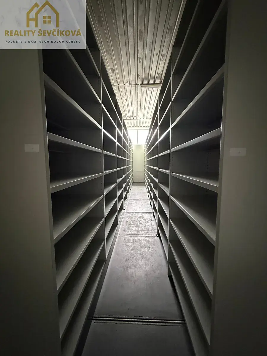 Prostory jsou vytápěné (administrativa + přední část archivu) a součástí pronájmu je kompletní pevně instalovaná regálová technologie Dexion, určená výhradně pro profesionální archivaci dokumentů.
