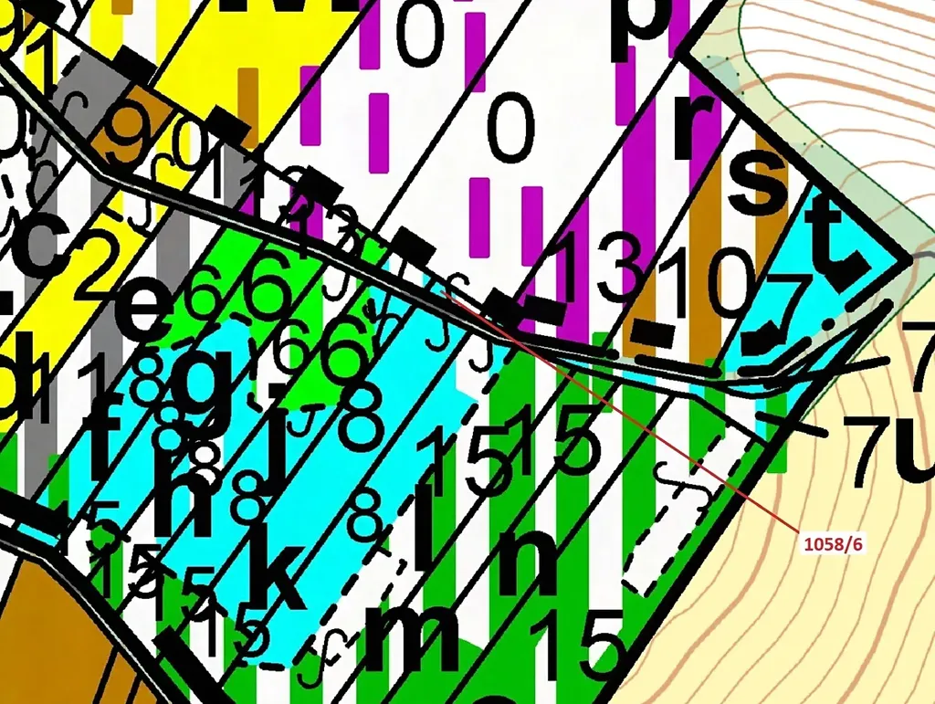 Lesní pozemek o výměře 77 m2, parcelní číslo 1058/6, podíl 1/1, katastrální území Veverské Knínice, obec Veverské Knínice, obec s rozšířenou působností Rosice, okres Brno-venkov, Jihomoravský kraj. Po těžbě.