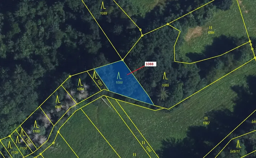Lesní pozemek o výměře 400 m2, parcelní číslo 1088, podíl 1/1, katastrální území Spešov, obec Spešov, obec s rozšířenou působností Blansko, okres Blansko, Jihomoravský kraj. Po těžbě.