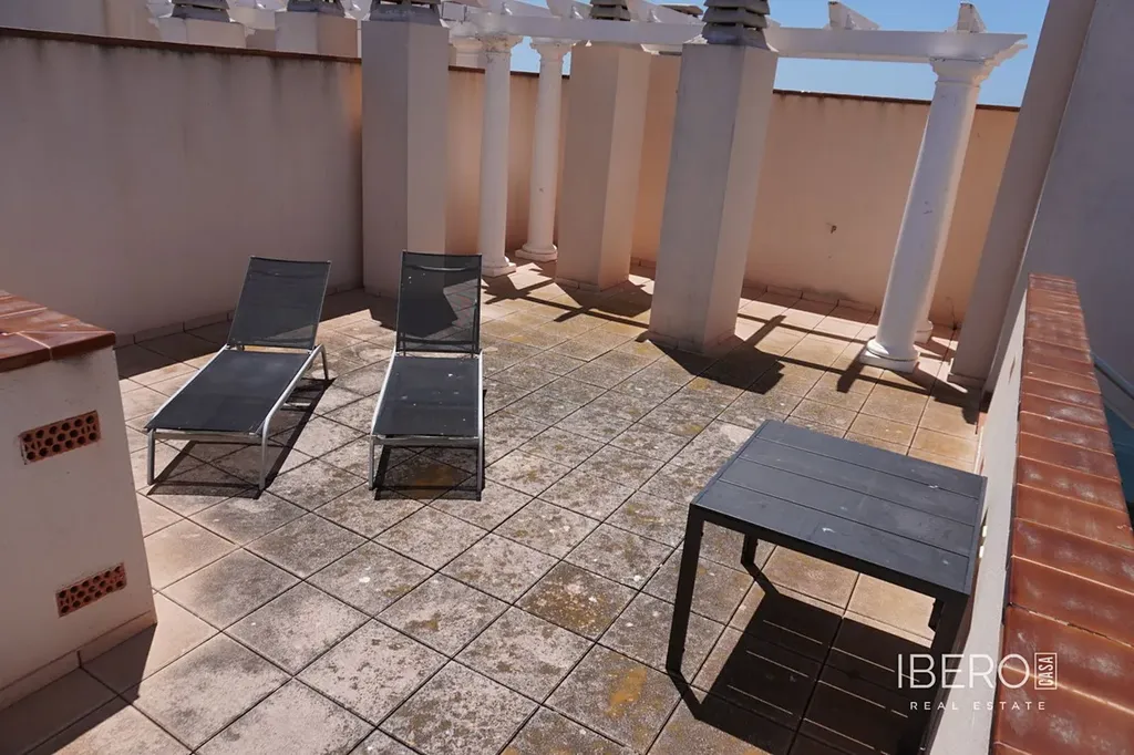 Nejvyšší patro penthouse 2 lůžka 2 vany s jednou En suite, samostatná kuchyň a technická místnost, obývací pokoj s jídelním koutem a terasovými dveřmi na terasu, která je prostorná a má dostatek místa pro jídelní stůl, je zde také další terasa u ložnice a střešní soukromé solárium, v obou ložnicích jsou skříně, stejně jako další ve vstupní hale, nemovitost se prodává zařízená a má klimatizaci. K dispozici je jedno vyhrazené parkovací místo v podzemní garáži a další parkovací místa na společném parkovišti. Z každého pokoje je výhled na moře.