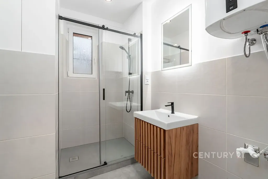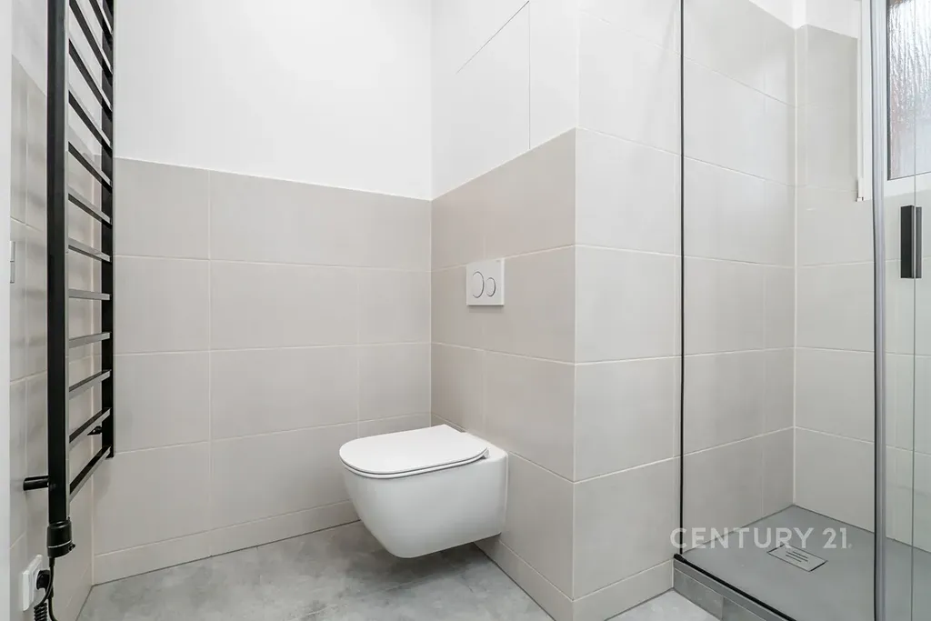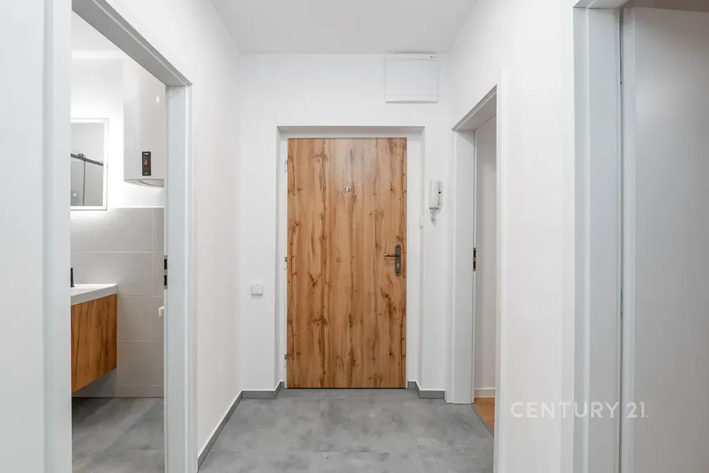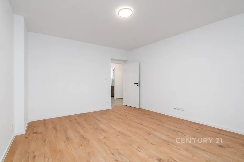 Součástí je moderní kuchyňská linka se spotřebiči, včetně vestavěné lednice a myčky. V koupelně najdete sprchový kout a komfort zajišťuje elektrické podlahové vytápění s regulací teploty v každé místnosti. Bonus navíc? Výhled do klidného vnitrobloku a přilehlého parku.