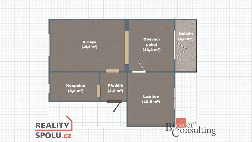 Praktická dispozice 2+1, která poskytuje dostatek soukromí i prostoru