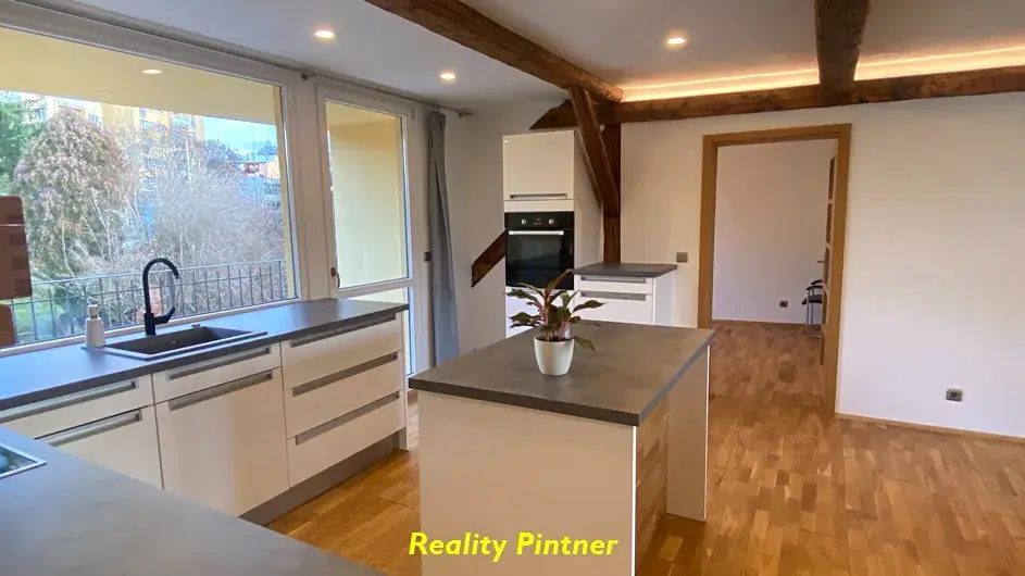K pronajmutí nabízíme atypický, nový, částečně zařízený byt 4+kk o výměře 100 m2 a terasou 10 m2 u centra města Příbramě. Byt se nachází v zrekonstruovaném domě v Příbrami I, ul. Plzeňská v jeho 3. NP. V bytě je navíc úklidová komora a koupelna je vybavená kromě vany i sprchovým koutem, kde nalezneme toaletu. Navíc je v bytě i samostatná místnost s toaletou, umyvadlem. Na podlahách je dřevěná krytina a keramické dlažby. Velmi pěkný, útulný byt s terasou směrem do ulice Na Vršku. Podmínkou uzavření nájemní smlouvy je složení jistoty ve výši 26 tis. Kč, úhrada prvního nájemného a provize RK ve výši 16 tis. Kč. Záloha na služby pro 5 osob ve výši 9 tis. Kč/měsíc (topení, ohřev teplé vody, voda, elektřina). Byt je ihned k dispozici. ENB: G