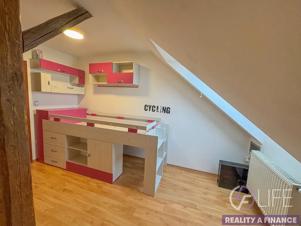 půdní prostor nabízí možnost rozšíření domu o další místnost — například pro domácí pracovnu, dětský pokoj nebo ateliér.