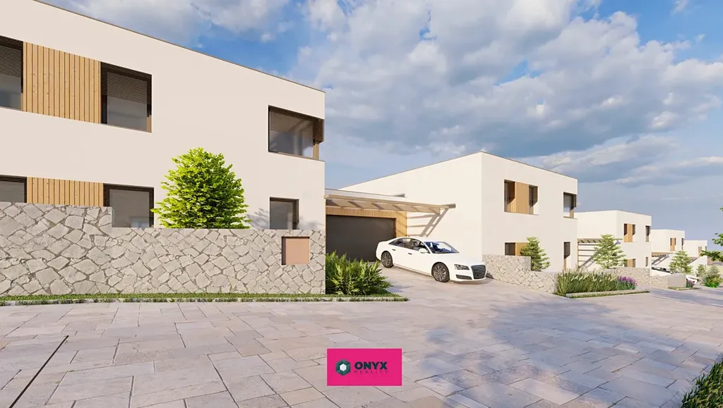 Nabízíme ke koupi velký moderní, nízkoenergetický - ve Třídě A - rodinný dům se dvěma plnohodnotnými podlažími, rovnou střechou a propracovaným dispozičním řešením. Dům disponuje šesti obytnými místnostmi, velkým obytným prostorem (obývací pokoj s kuchyní o velikosti 46 m² s prosklenou stěnou do "L" s přímým vstupem na terasu s HS portálem), třemi koupelnami, třemi toaletami a dvougaráží. Praktickým bonusem je samostatná prádelna s velkým francouzským oknem.