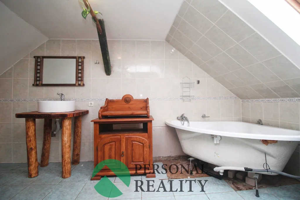 Pokud hledáte dům k bydlení, nebo k rekreaci, tak tato nabídka splňuje oba požadavky. V přízemí domu se nachází velký obývací pokoj s trámovým stropem a kuchyně. V patře další velký pokoj, z části i ložnice a prostorná koupelna s rohovou vanou. Pokud rádi rekonstruujete, tak je zde ještě jeden velký prostor v pravé části domu, nyní sloužící jako garáž, ale prostor bude mít cca 30m2. Před domem chodník a v přední části malý pozemek, jako by volal po pergole. Dům je napojen na veřejný vodovod, vytápěn ústředním elektrickým topením, nebo krbovými kamny. Pro více informací volejte RK