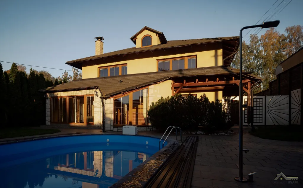 Majitelé stavěli tento dům s úmyslem vybudovat nejen krásné rodinné zázemí, ale také chtěli využít svůj pozemek ke koupání nebo relaxaci, třeba u protékajícího potůčku.
