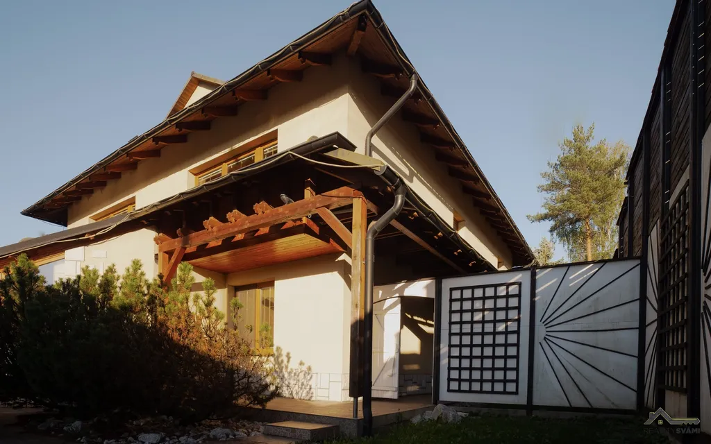 Ve všech pokojích jsou umístěny vestavěné skříně a převažujícím materiálem v domě je dřevo, které vytváří teplo domova. Veškeré dveře, které jsou zde umístěny, jsou z masivu.