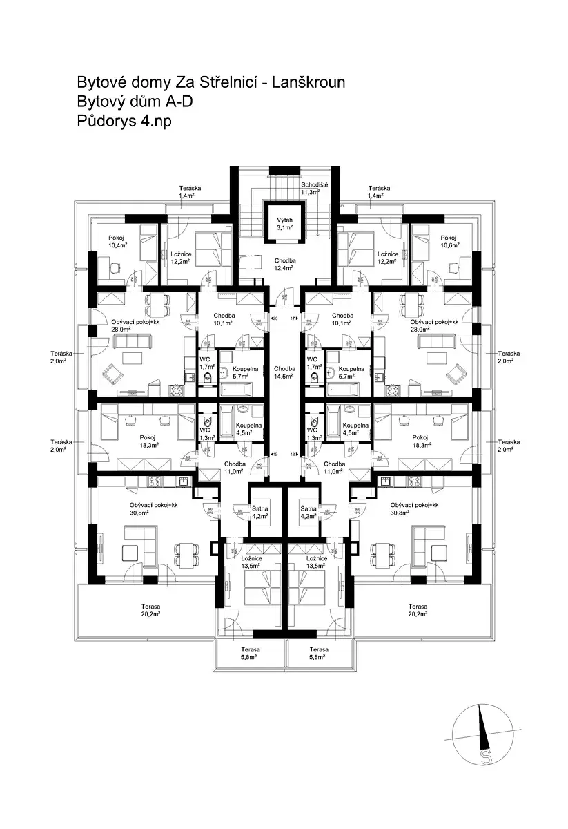 Nabízíme k prodeji bytovou jednotku v lokalitě Lanškroun - Vančurova ulice. Jedná se o výstavbu třetího čtyřpatrového domu. Byt č. 17 o dispozici 3+kk+2 terásky se nachází v 4. nadzemním podlaží. Součástí ceny je sklep. V bytovém domě je výtah!