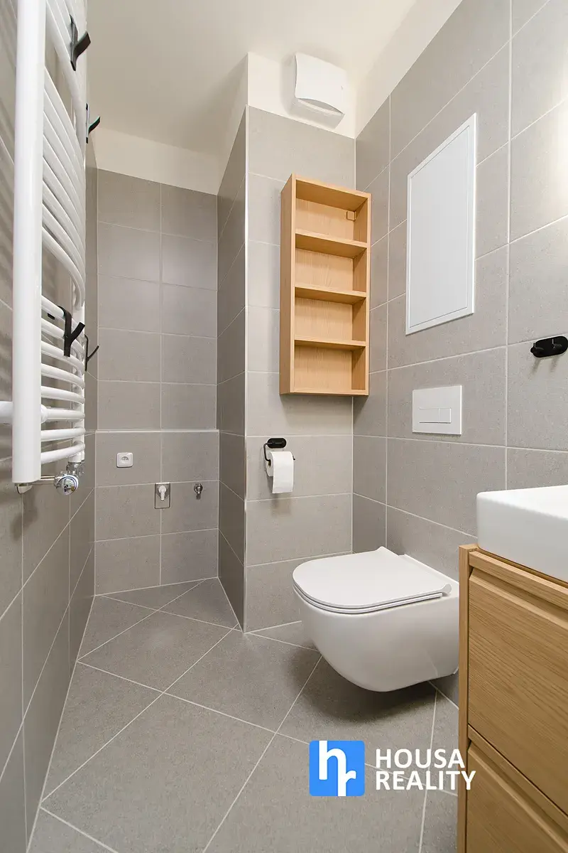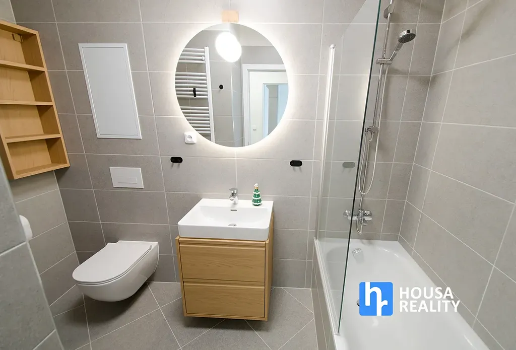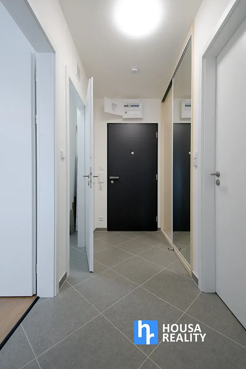 Nabízíme k pronájmu nový, moderní byt 2+kk o velikosti 55 m² + terasa 6,6 m² a garážovým stáním přímo pod domem. Byt je zcela nový a kompletně vybavený, jehož součástí je kuchyňská linka s vestavěnou myčkou, lednicí i mikrovlnnou troubou, dále vestavěná šatní skříň v chodbě a koupelnový nábytek. V oknech jsou instalovány elektricky ovládané předokenní žaluzie. Velkou výhodou dispozice je také prostorná komora.