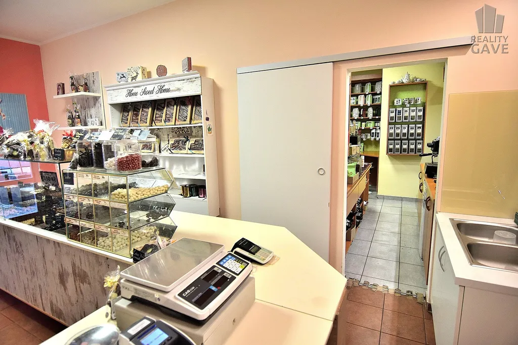 Velikost prostor Pralinka: Prodejna 20,5 m² + sklad a sociální zařízení 7,7 m² (celklem 28,2 m²)