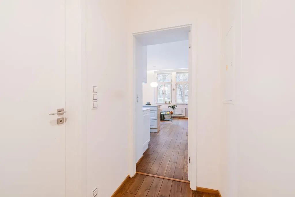 Navštivte tento nádherný byt na prodej, který se nachází na prestižní adrese Vratislavova 60/9, Praha, jen co by kamenem dohodil od historického centra Prahy a kouzelného místa Národní kulturní památky Vyšehrad, která je známá svým bohatým kulturním dědictvím a překrásnými parky. Byt o výměře 56 m² nabízí moderní interiér po výstavbě v roce 2015, která zdůrazňuje elegantní kombinace klasických prvků s nejnovějšími trendy v bydlení.