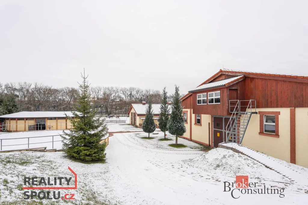 Zázemí tvoří 42 boxů, klubovna s výhledem do haly, sociální a provozní zázemí a ubytování v 2. NP. Jezdecké plochy zahrnují krytou halu, dvě venkovní jízdárny, kolotoč, kratší cvalovou dráhu a výběhy, s možností využívat i sousední pozemek. Součástí areálu je také kapacitní parkoviště a potůček, který areálem protéká.