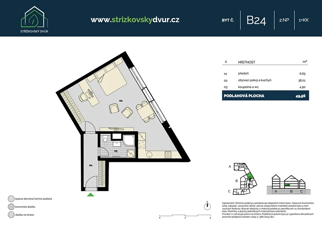 K bytu je nutné přikoupit sklepní kóji. Garážové stání volitelné.