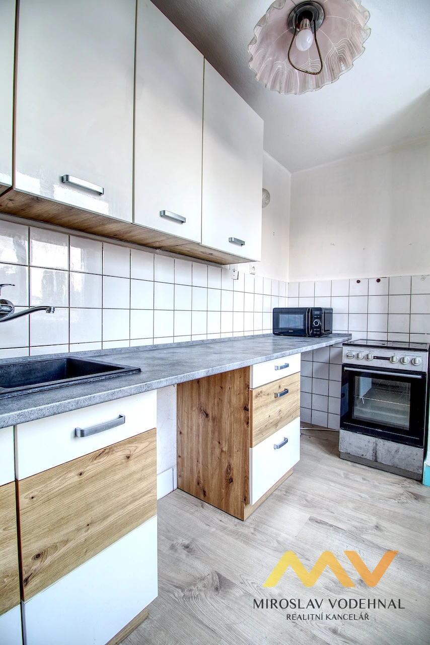Jedná se o nezařízený byt, který disponuje v obytné kuchyni kuchyňskou linkou s elektrickým sporákem. Pokoje jsou neprůchozí, zcela bez vybavení. Koupelna je s vanou a přípojkou na pračku. Toaleta je samostatně. V předsíni je vestavná skříň. Z obývacího pokoje je přístup na balkón (2 m2). Byt bude předán čistě bíle vymalovaný nebo dle dohody. V suterénu domu je sklepní kóje, sušárna.