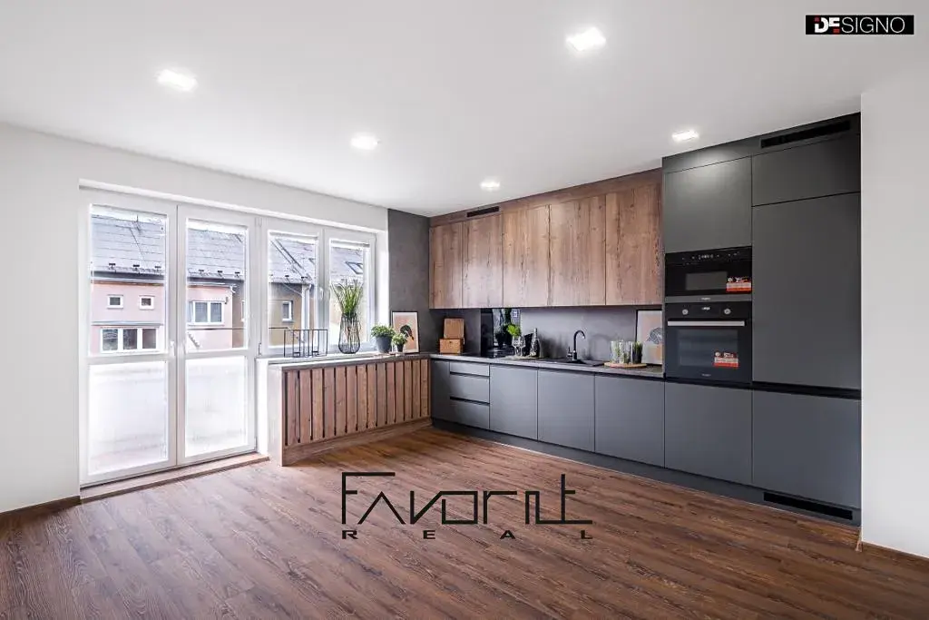 • prostorný obývací pokoj s kuchyní na míru a vstupem na balkón