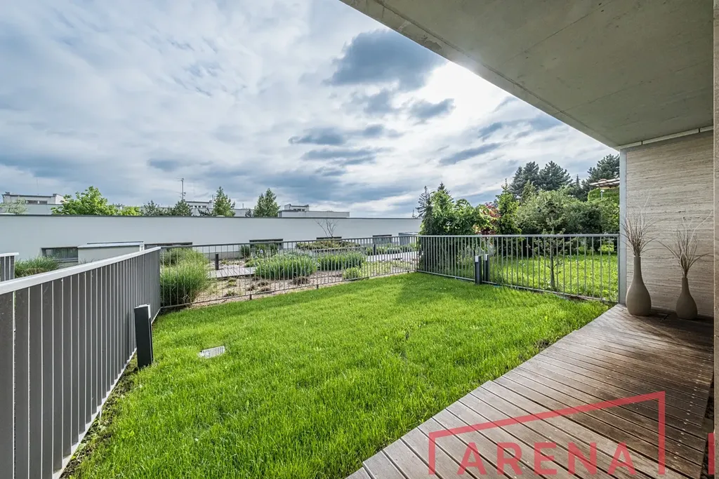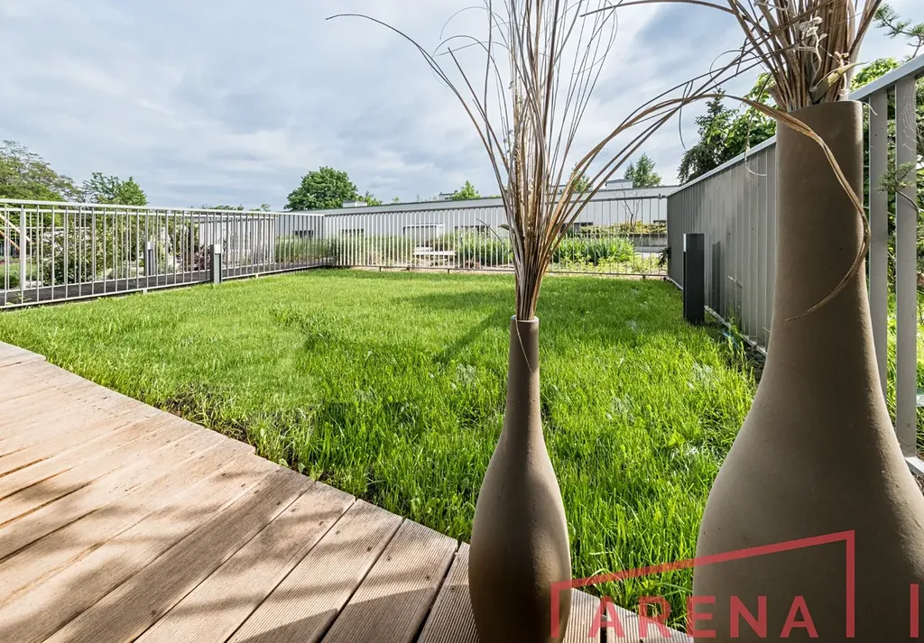 Užitná plocha bytu je 69m² , upravená zahrádka s osvětlením a automatickou závlahou trávníku o rozloze 41m²