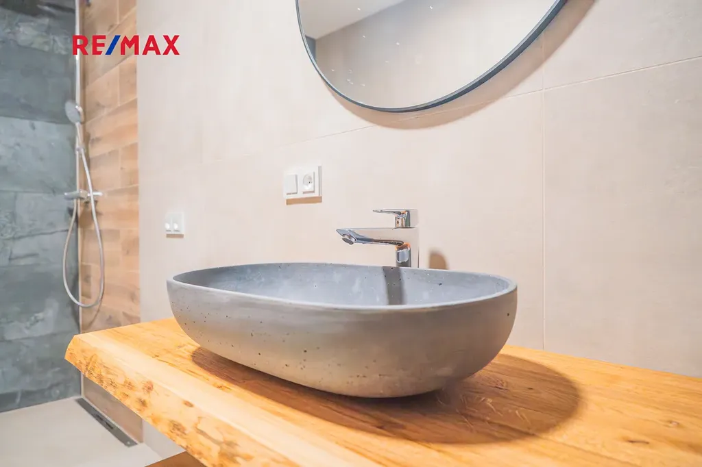 Byt sám o sobě vyniká promyšlenou a velmi atypickou dispozicí. Dominantou hlavního podlaží je moderní kuchyňská linka s dechberoucím výhledem až k vrcholkům Krkonoš včetně Sněžky. Na ni navazuje stylový obývací pokoj, který v sobě krásně spojuje současný design a přiznané prvky dřeva — prostor působí vzdušně, ale zároveň příjemně útulně. V této části naleznete také samostatné WC, komoru a prostornou koupelnu s vanou i sprchovým koutem. Kromě toho jsou zde dva oddělené pokoje — skvělá volba pro dětské pokoje, pracovnu či hostinský pokoj.