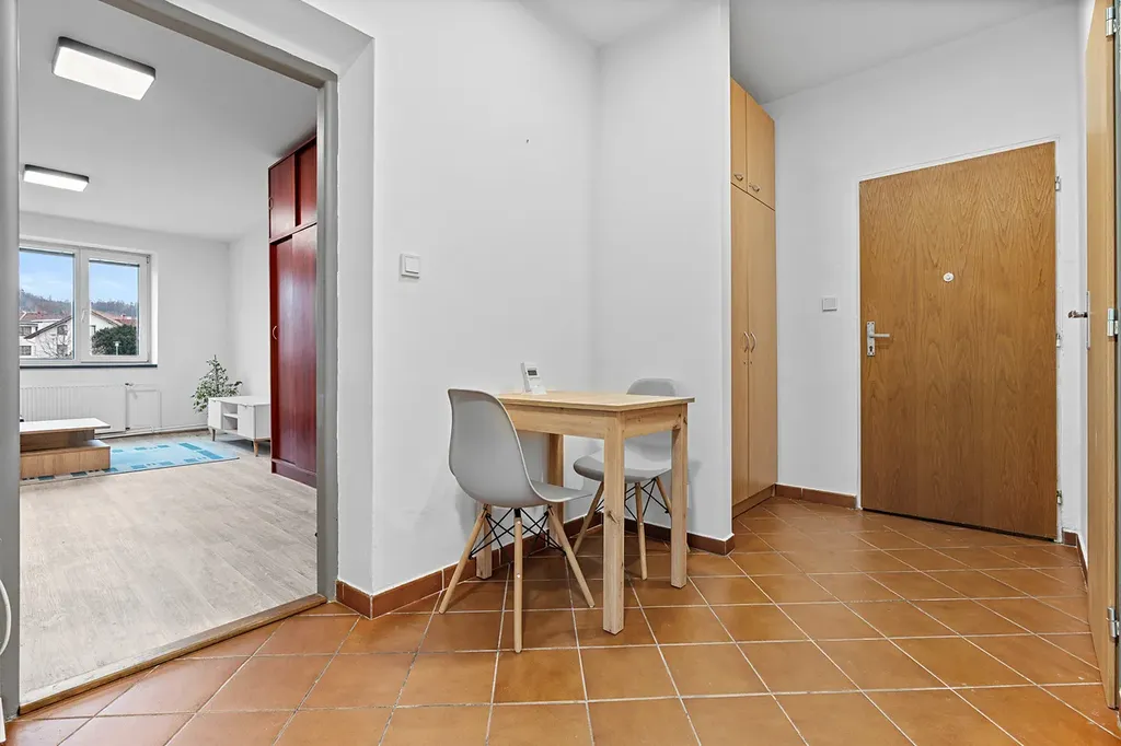 Centrum města je velkou výhodou tohoto bytu. Parkování zajišťuje přilehlé parkoviště u domu a v jeho okolí.