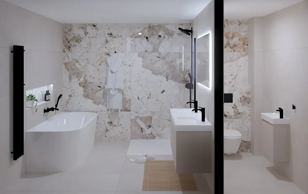 Cena obsahuje stavební připravenost, žaluzie, klima, koupelny, podlahy a dveře ve standardu.