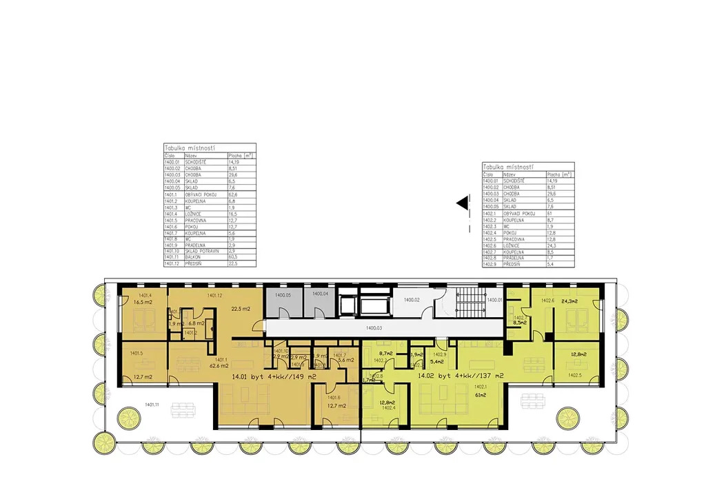 Cena bytu obsahuje stavební připravenost bytu, žaluzie, klima, koupelny, podlahy a dveře ve standardu.