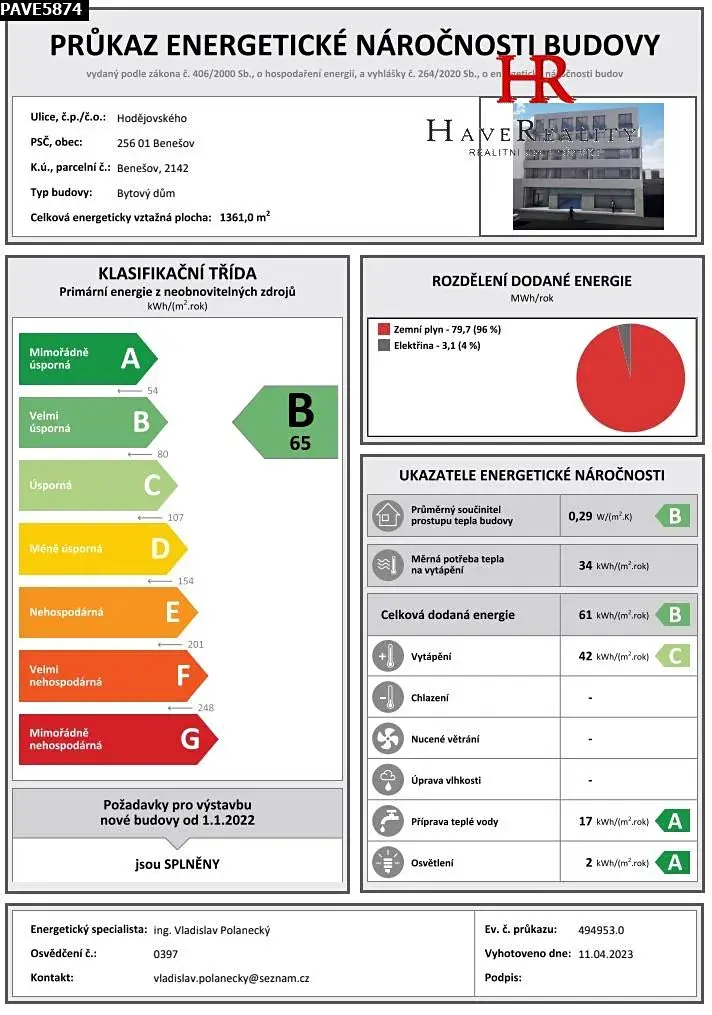 | Třída energetické náročnosti | B - Velmi úsporná |