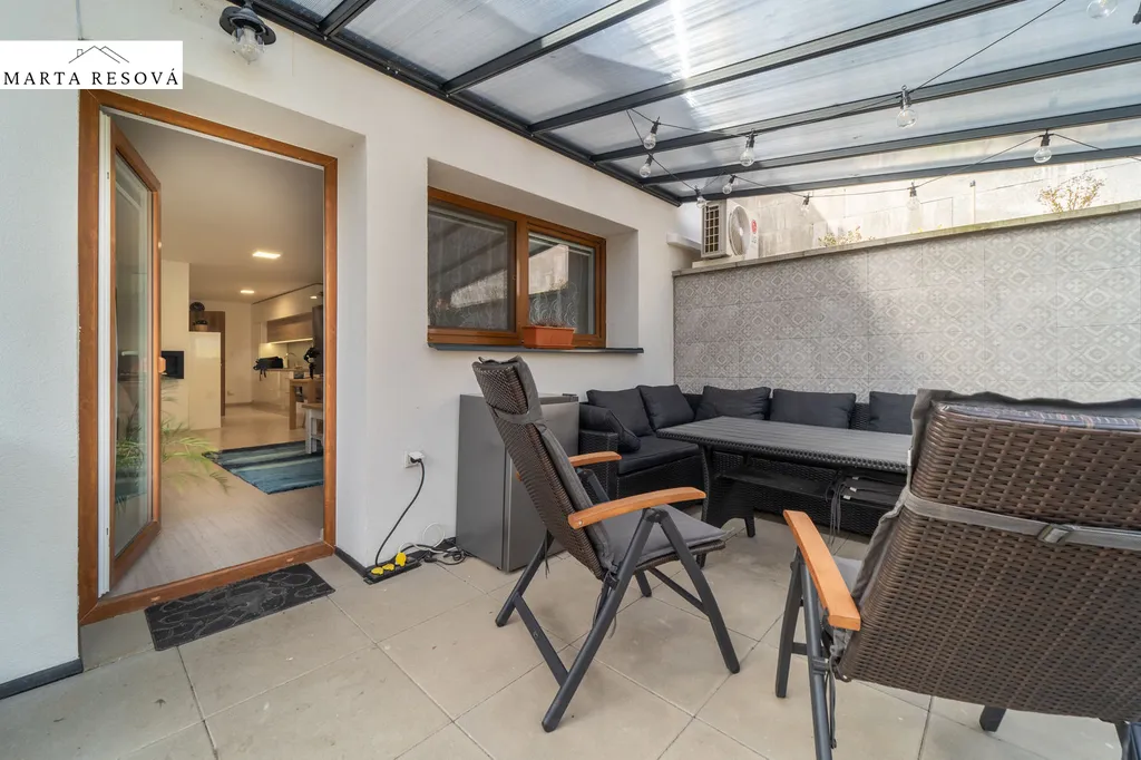 Venkovní plochy: Zahrada 118 m² + Dvorek 60 m² + Terasa s pergolou