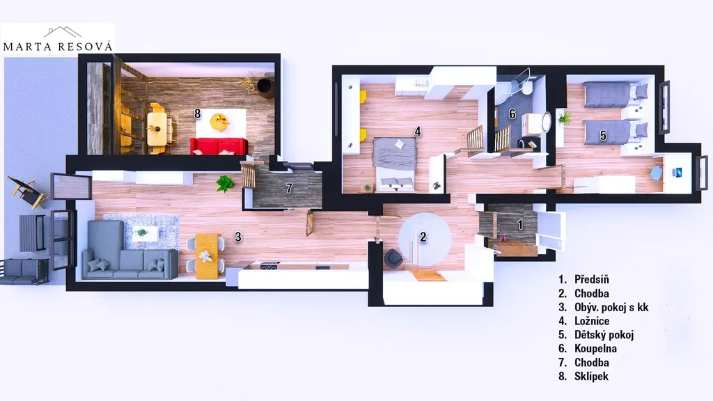 Plocha: 146 m² poskytuje dostatek místa pro relaxaci, práci i společenský život.
