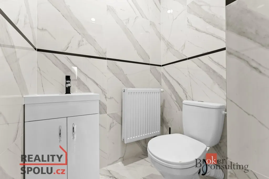 V suterénu je suchý sklep s elektrohydraulickým poklopem na dálkové ovládání, který poslouží jako sklad, dílna nebo klidně vinný sklípek. V přízemí najdete prostorný obývací pokoj se vstupem na terasu, místnost pro kuchyňský kout s jídelnou, samostatný pokoj, koupelnu, samostatné WC a vstupní chodbu se schodištěm do patra i do sklepa. Rozvody pro kuchyňskou linku jsou nachystané, takže si nový majitel může navrhnout kuchyň přesně podle svých představ a potřeb. V patře se nacházejí dva samostatné pokoje, chodba a druhé samostatné WC.