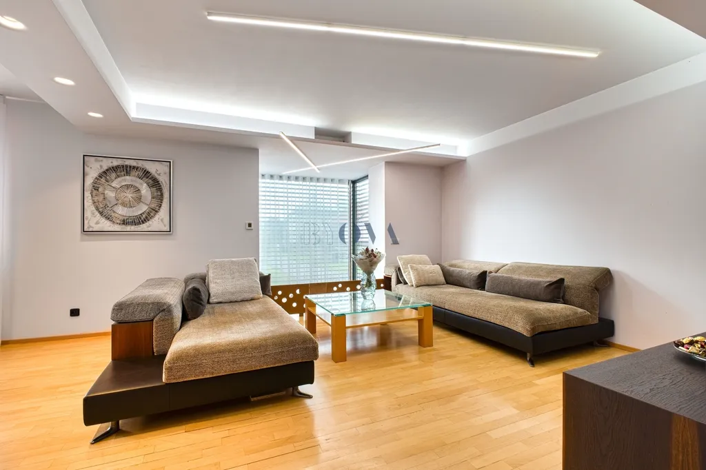 • v obývacím pokoji zatahovací projekční plátno pro filmové večery
