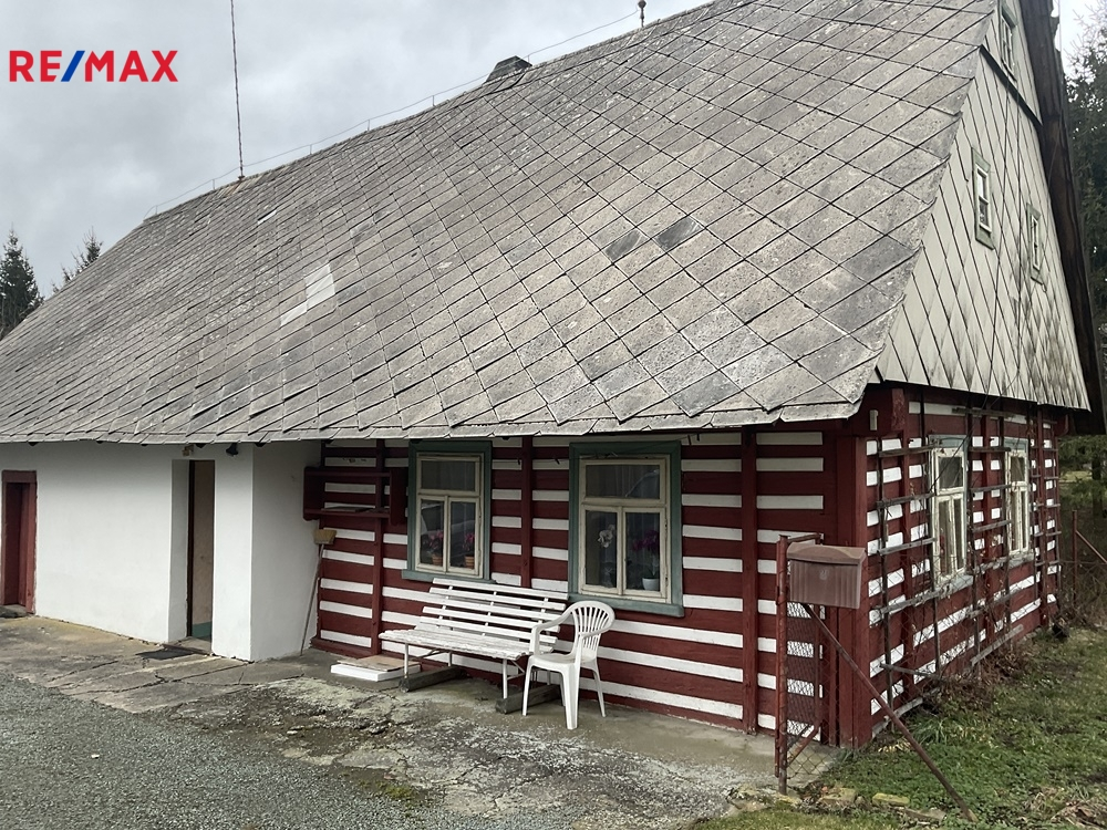 Součástí prodeje je také malý lesní pozemek se vzrostlými smrky.