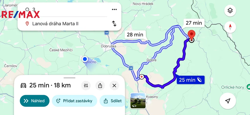 Výborná dostupnost: Škoda Auto Kvasiny 6,3 km, Rychnov nad Kněžnou 12 km, Deštné v Orlických horách 19 km.