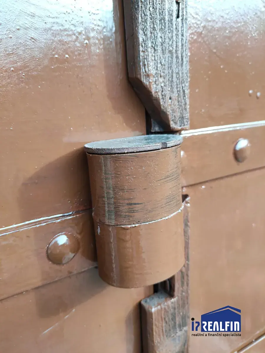 Garáž má dřevěná oplechovaná vrata zabezpečená mimo jiné i visacím zámkem v železném krytu. V garáži je zavedena elektrika.