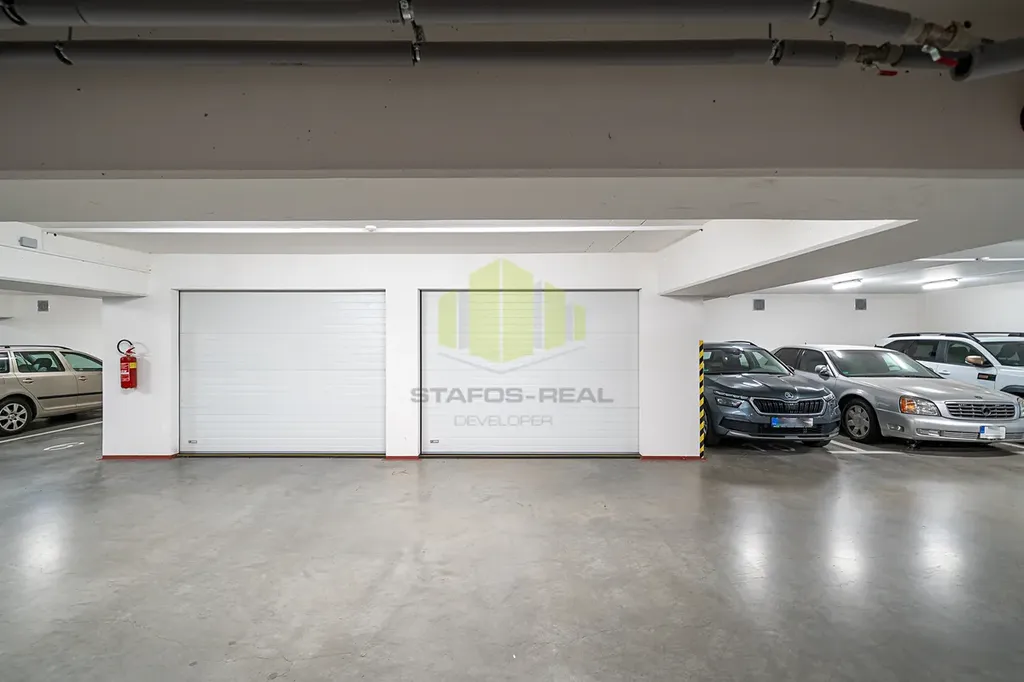Součástí je také příprava na instalaci elektro autonabíječky (380 V). Vjezd do hromadné garáže je zabezpečen společnými vraty na dálkové ovládání a celý prostor je monitorován kamerovým systémem. Přístup i manipulace jsou pohodlné a bezpečné. Prostor je ideální nejen pro parkování automobilu, ale také pro uskladnění motocyklu, kol nebo sezónních věcí.