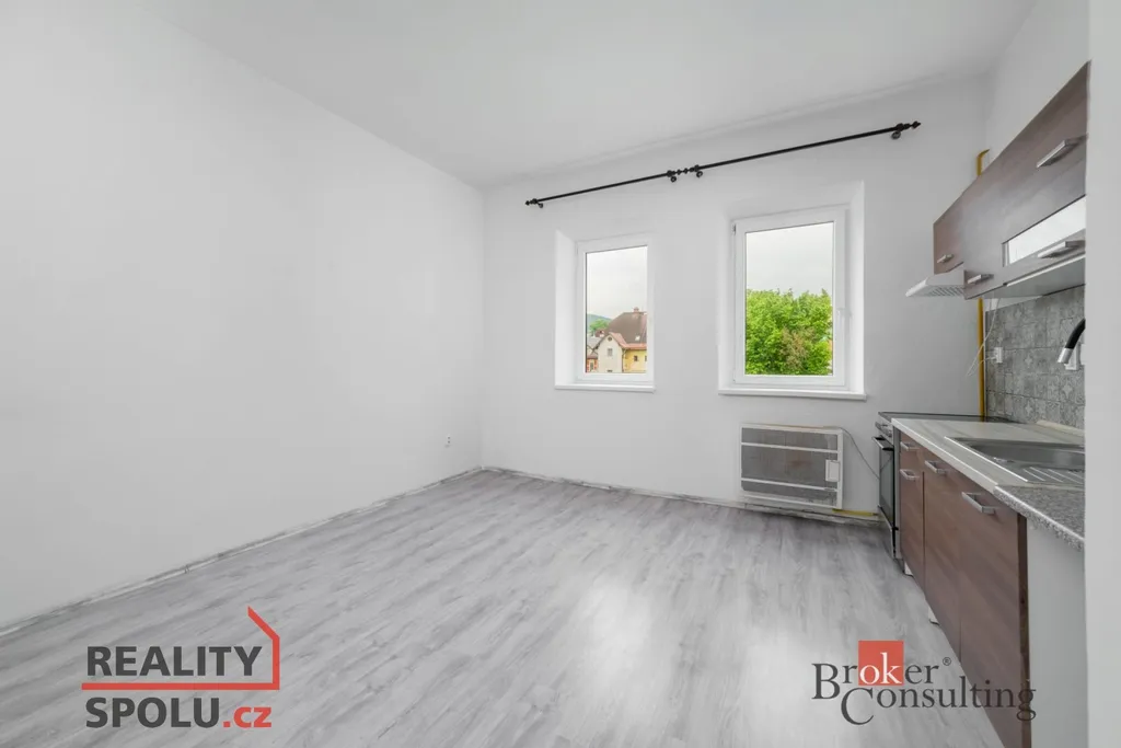 Byt prošel čerstvou rekonstrukcí podlah a oken, takže interiér působí čistě, moderně a útulně. Dominantou je nová kuchyňská linka, která nabízí dostatek prostoru pro vaření i pohodlné stolování.