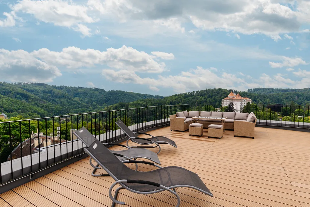 Střešní terasa 180 m² s výhledem na celé Karlovy Vary