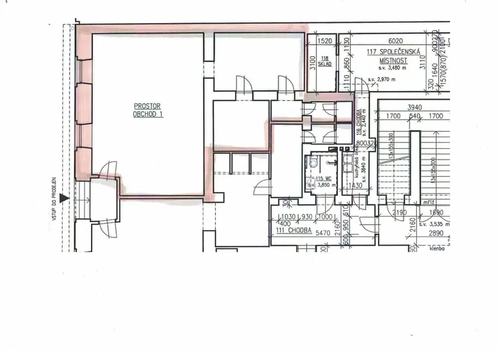 • hlavní obchodní plocha: 52 m²