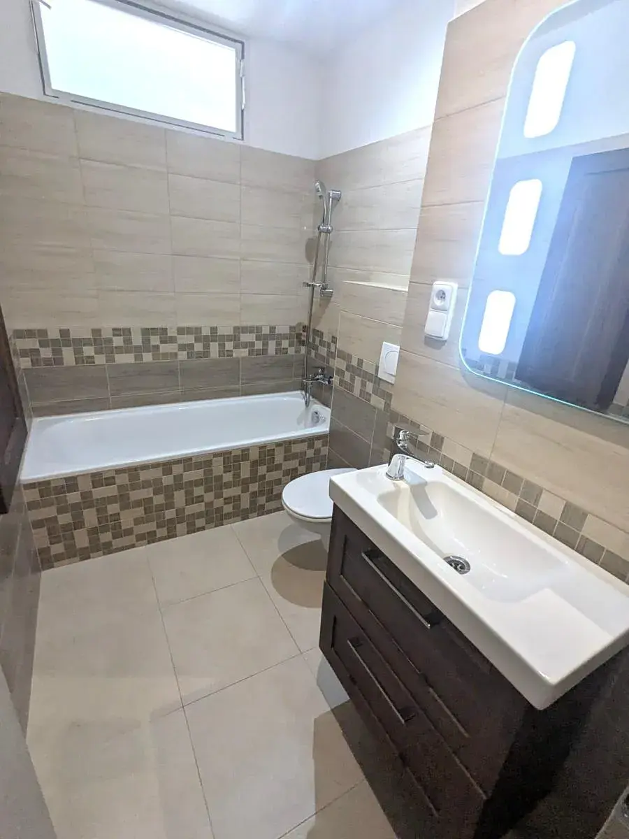 Nabízíme k pronájmu prostorný světlý byt o dispozici 2+1 a výměře 58 m2 v 2.patře s výtahem na adrese Opletalova 472 v Ústí nad Labem. V kuchyni je vkusná kuchyňská linka s elektrickým sporákem. Koupelnové jádro je po rekonstrukci. V koupelně je vana, WC a umyvadlo se skříňkou. Pokoje jsou vyklizené a připravené k nastěhování. Součástí bytu je i zděný prostorný kumbál s posuvnými dveřmi. K bytu náleží sklepní kóje.