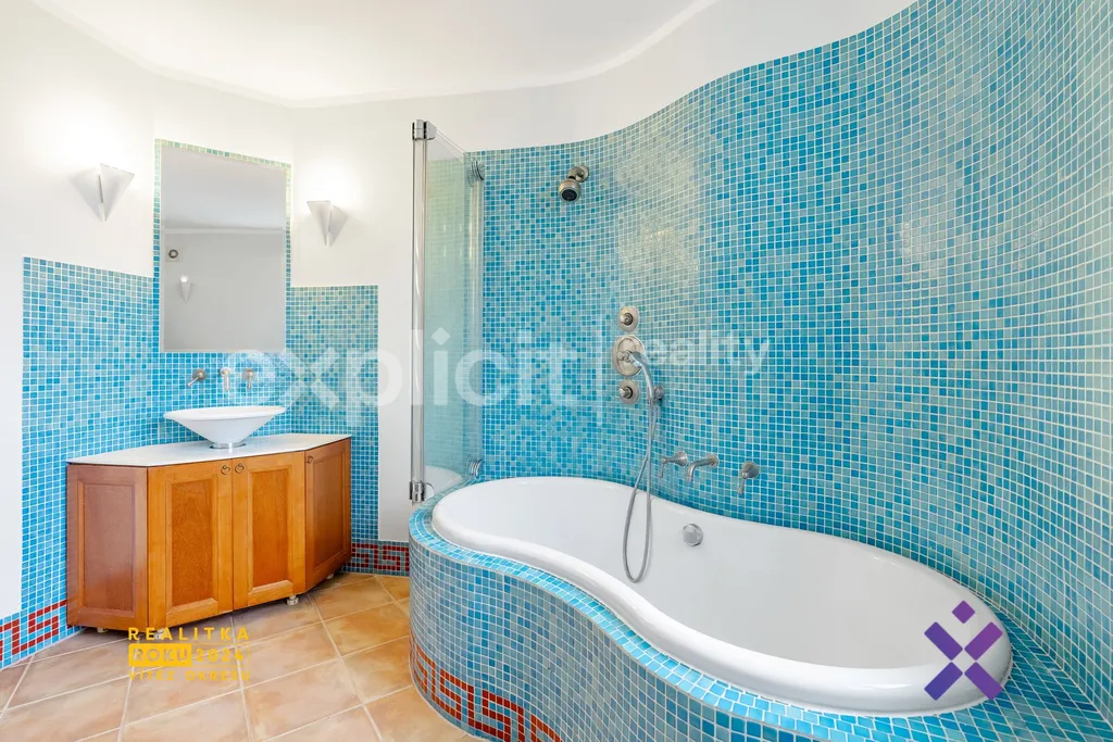 Po vstupu do bytu vás přivítá otevřený a světlý prostor. Po pravé straně zádveří se nachází samostatné WC, pračka a sušička. Chodba dále vede ke koupelně vybavené vanou, velkým umyvadlem, toaletou a bidetem. Následně plynule přechází do kuchyňské části bez dveří. Kuchyňskou linku tvoří vestavná trouba, kombinovaná varná deska a digestoř, rohový dřez, myčka nádobí, dostatek skříněk, vestavná mikrovlnná trouba a vkusný regál na víno. Pracovní plocha je prakticky u okna. Hlavní obývací prostor navazuje na lodžii a dvojí dveře na další pokoj, který lze příčkou rozdělit na půl. Celkově byt působí čistě, svěže a nabízí velmi příjemné bydlení. V celém bytě je instalováno podlahové vytápění.