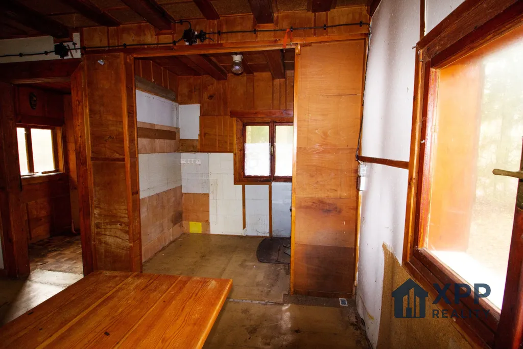 Chata nabízí jednoduchou, ale funkční dispozici – vstupní veranda, hlavní obytná místnost, prostor původní kuchyně s kamny na tuhá paliva, menší místnost vhodná jako ložnice, technická nika a toaleta se septikem. V podkroví se nachází prostorný otevřený pokoj (11 m²).