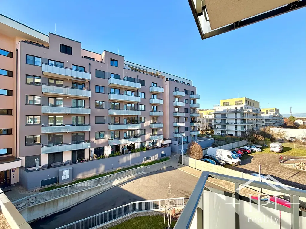 Další výhodou bytu je větší balkon, který nabízí příjemné venkovní posezení. Komfort bydlení dále zvyšuje rekuperační systém zajišťující stálý přísun čerstvého vzduchu a klimatizace. K bytu je možné pronajmout také garážové stání za 1 500 Kč/měsíc.