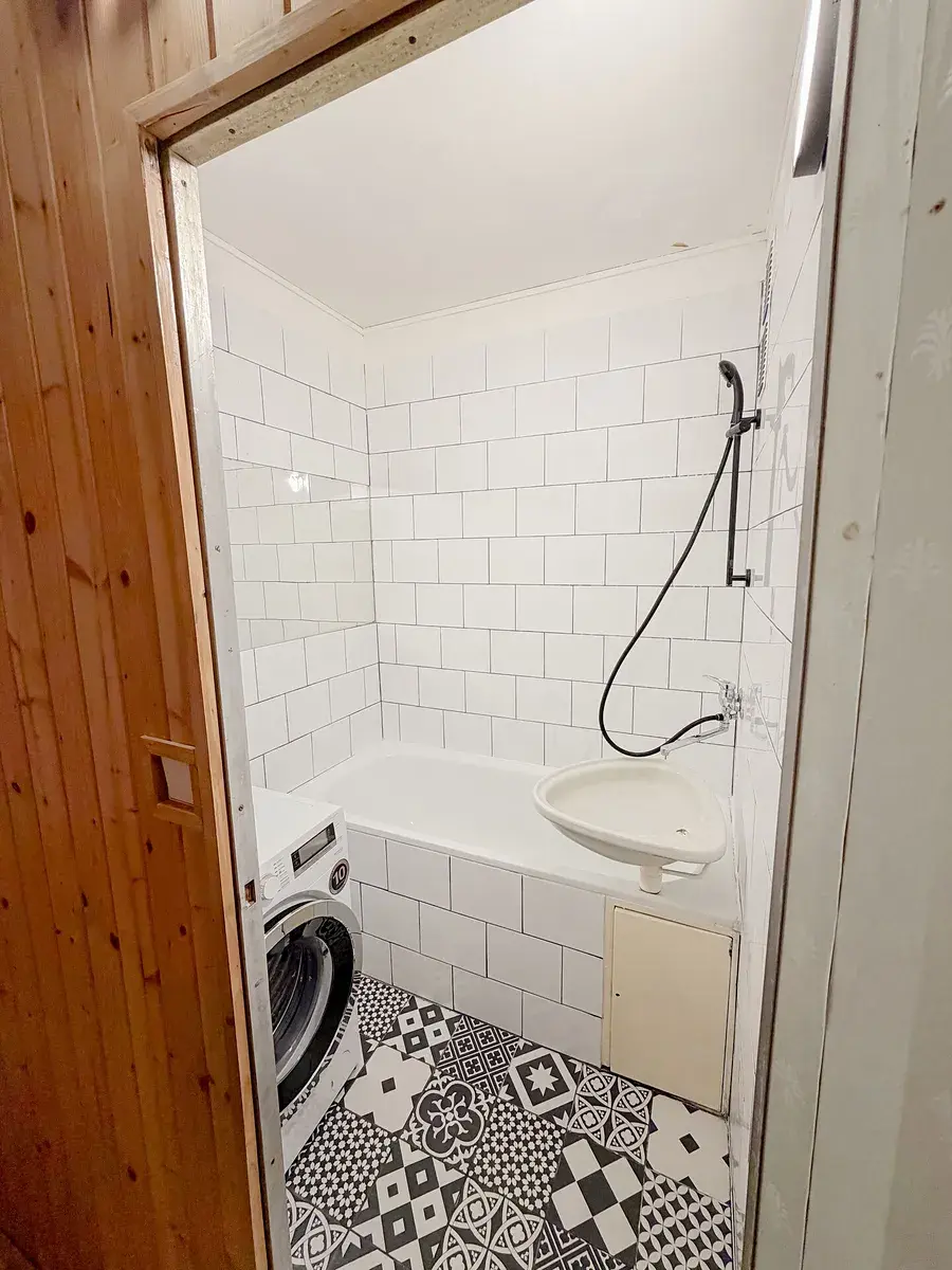 V koupelně se nachází vana, umyvadlo a pračka, toaleta je samostatná, což výrazně zvyšuje komfort bydlení. Díky praktickému rozložení pokojů nabízí byt dostatek soukromí i pohodlí pro každodenní provoz.