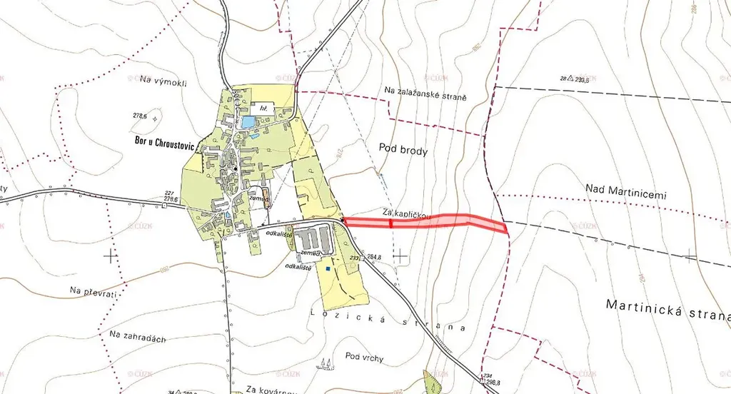 Nabízíme k prodeji pozemky ve 100% vlastnictví, nacházející se v katastrálním území Bor u Chroustovic, okres Chrudim. Pozemky jsou zapsány na listu vlastnictví č. 1071 a zahrnují tyto parcely: