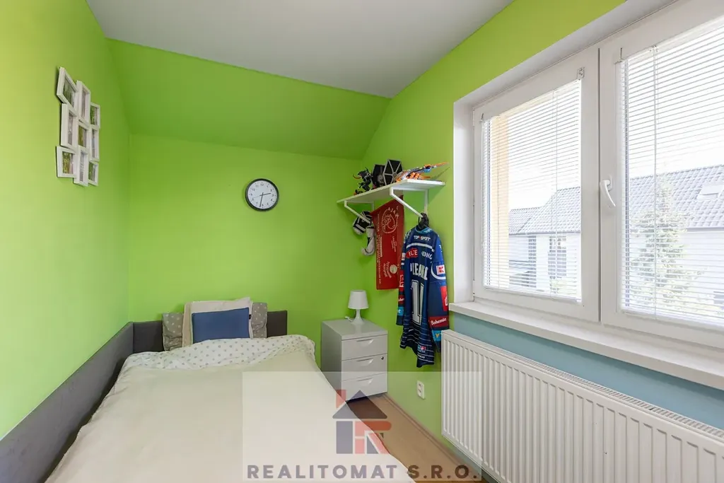 2. nadzemní podlaží: Tři prostorné pokoje a koupelna s WC. Z koupelny a jednoho z pokojů je přístup na balkon. Koupelna je vybavena přípojkou na pračku a technickým zázemím pro vytápění domu a ohřev vody (elektrokotel a elektrický bojler).