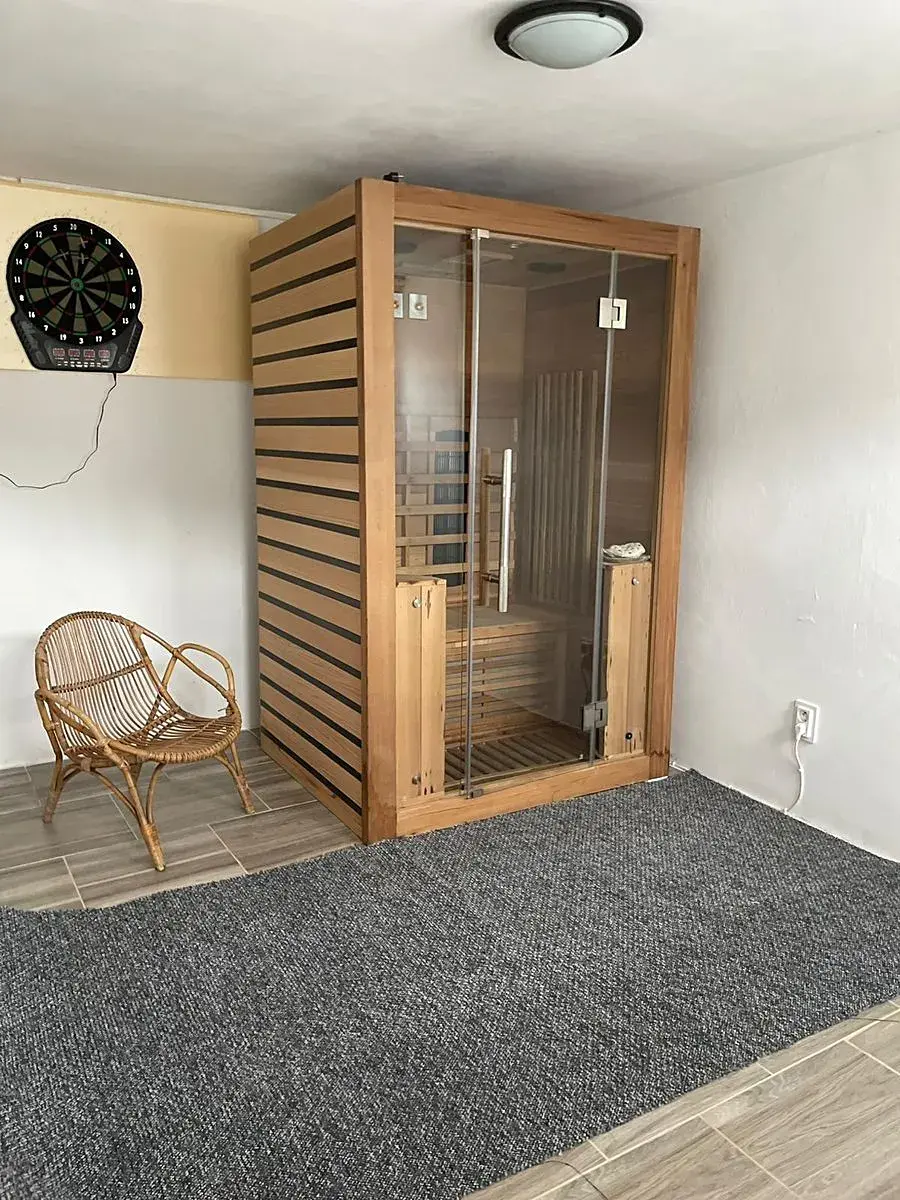 K dispozici je garáž, dvě parkovací stání, kompletně vybudovaný vjezd s elektrickou bránou, pozemek se zcela oplocen, vzrostlá okrasná zahrada zajišťuje maximální soukromí.