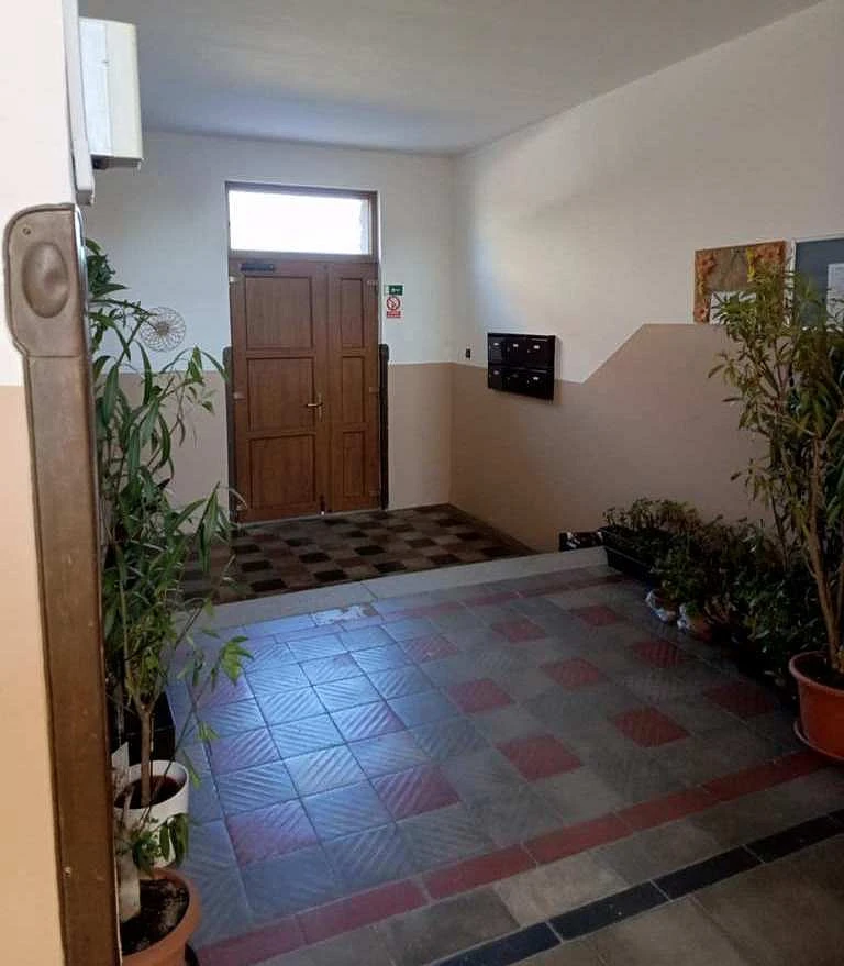 V bytě se nachází obývací pokoj, kuchyň, koupelna, WC, předsíň a komora, k bytu náleží sklep.