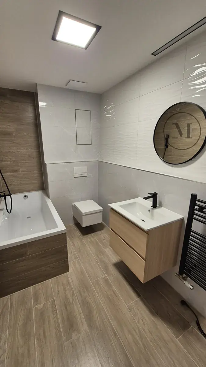 Oba prostory zdobí velmi vkusné a moderní designové obklady.