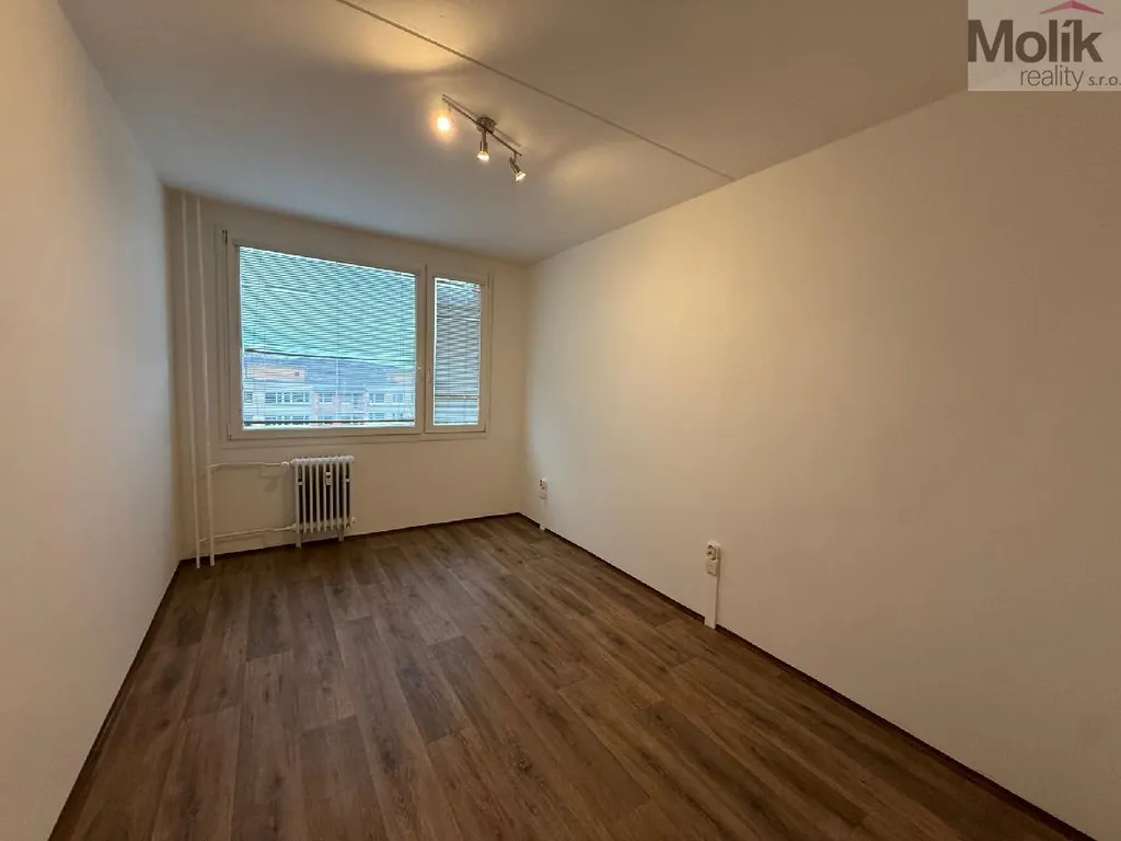 V kuchyni a v pokojích je položeno linoleum, v obývacím pokoji a v chodbě je položena plovoucí podlaha, byt je vybílen, natřené topení.
