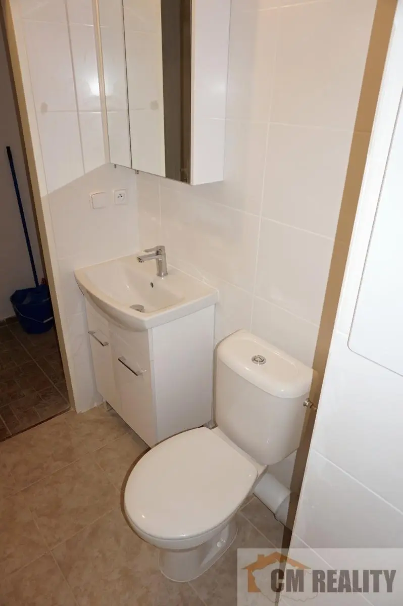 Jedná se o pronájem bytu 1+kk s balkonem v osobním vlastnictví o celkové výměře 32m2. Byt je situován ve 2. patře bytového domu s výtahem. Po vstupu do bytu je vstupní chodba, vpravo z chodby je koupelna se sprchovým koutem, umyvadlem a WC. V koupelně je prostor pro pračku. V chodbě před koupelnou je prostor např. pro šatní skříň. Mezi vchodovými dveřmi bytu a pokojem je kuchyňská linka s el. varnou deskou a vestavěnou el. troubou. Byt je po celkové rekonstrukci. Podlaha v pokoji renovované parkety, v kuchyňské části, chodbě a koupelně je keramická dlažba. Kuchyňská linka i vybavení koupelny je zcela nové a nájemník bude prvouživatel bytu po jeho rekonstrukci.